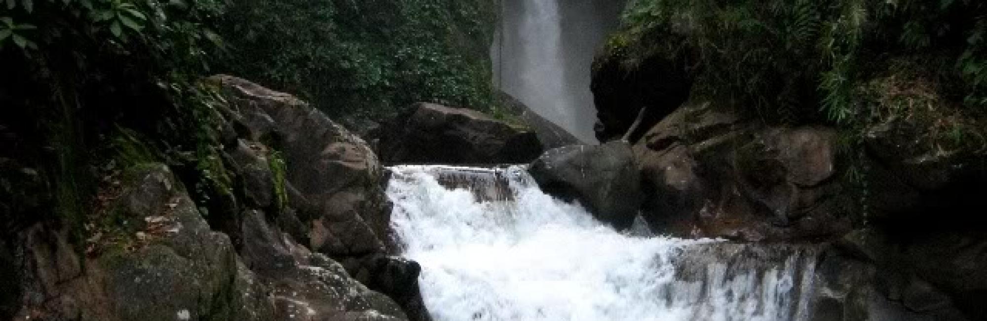 This waterfall is formed when the "Caraño" river falls in a vertical drop of approximately 50 meters in height. It is very difficult to reach the base of the waterfall since the vertical rock walls are very smooth because of the large amount of seaweeds that are there. Little by little the water flows and forms natural pools. This area is rich in biodiversity. Here it is possible to observe several species of butterflies and orchids. The Caraño river waterfall is 700 meters above sea level, and has an average temperature of 20 ° C.