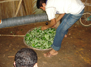 Se utiliza en las sesiones de la Maloca junto con el tabaco preparado. Esta vinculación armónica y sagrada de la Coca y el Tabaco, permite una mayor apertura y lucidez intelectual por parte de quienes dirigen estas sesiones de educación tradicional en la Maloca, e igualmente permite una mayor concentración por parte de quienes asisten a estas sesiones. El Mambe también es utilizado con frecuencia en las jornadas diarias de trabajo, pesca, agricultura, etc. " La Coca es algo sagrado, es propia de nuestra cultura, no es para negocio, es para nuestra utilización tradicional" (palabras del gobernado indígena de los Huitotos).